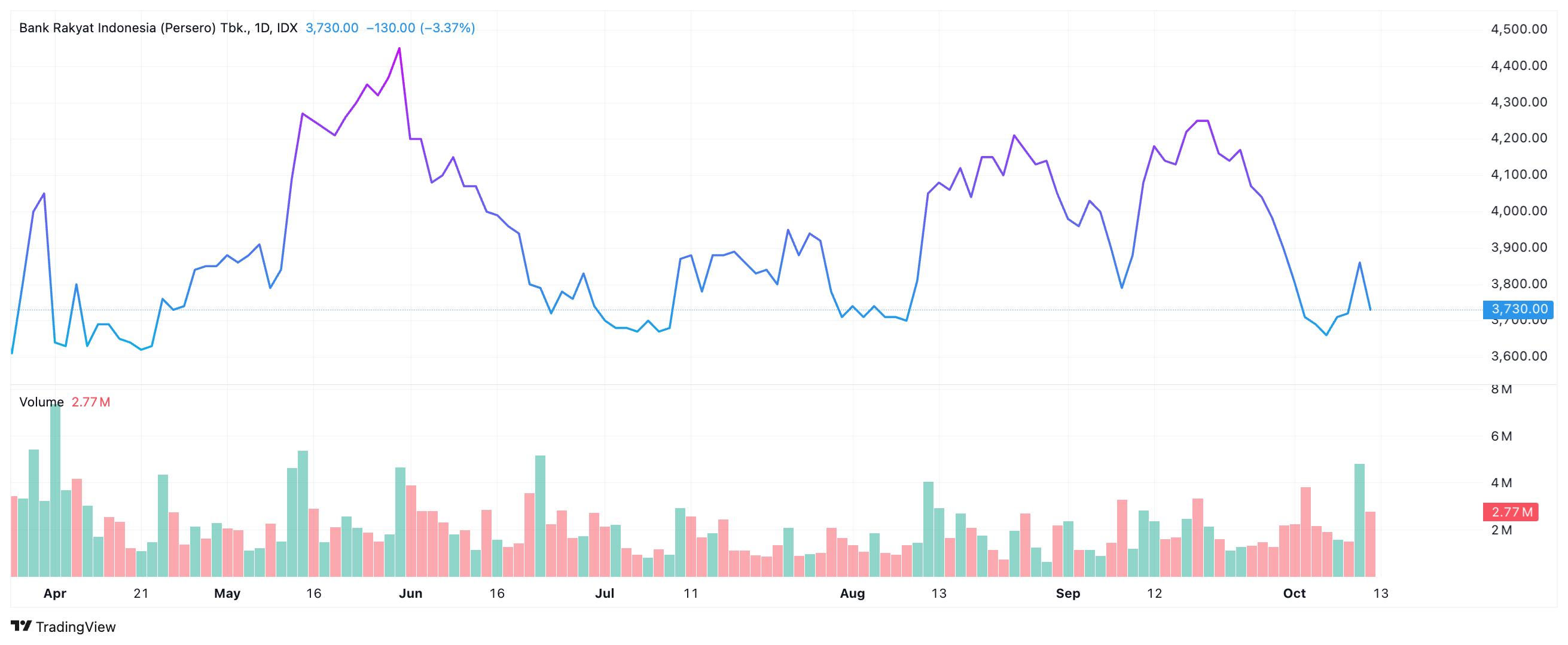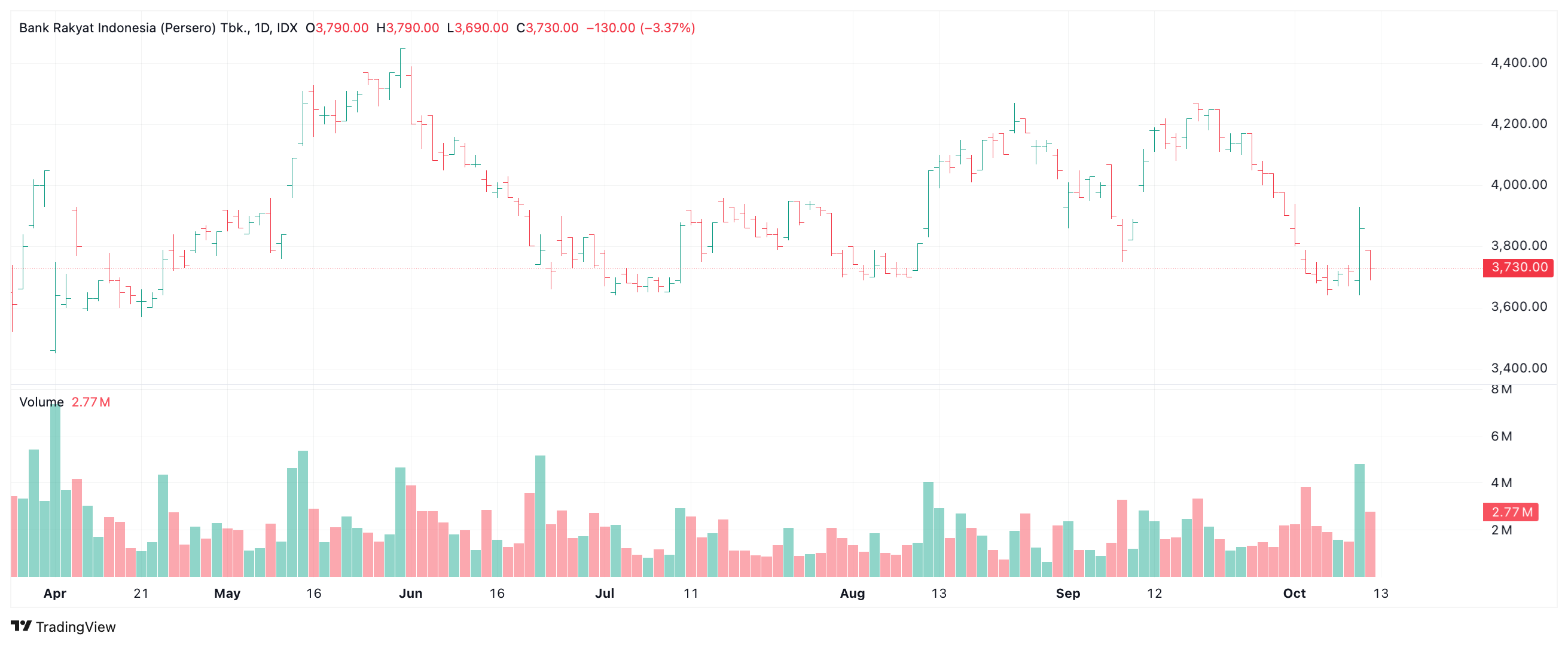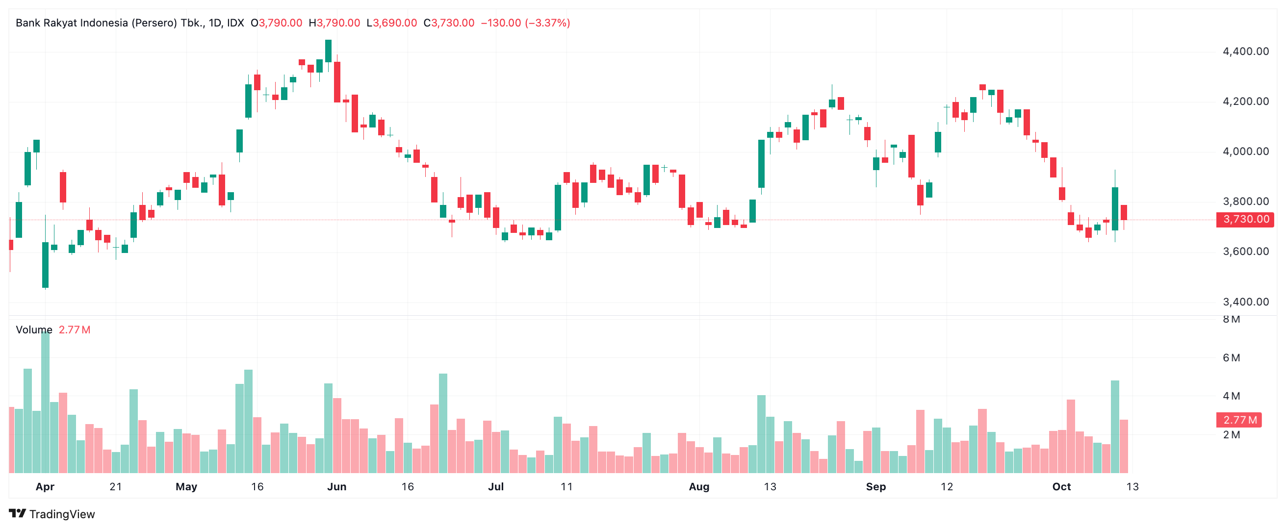 Volume menunjukkan jumlah transaksi atau saham yang diperdagangkan selama periode tertentu. Volume membantu mengonfirmasi kekuatan tren.